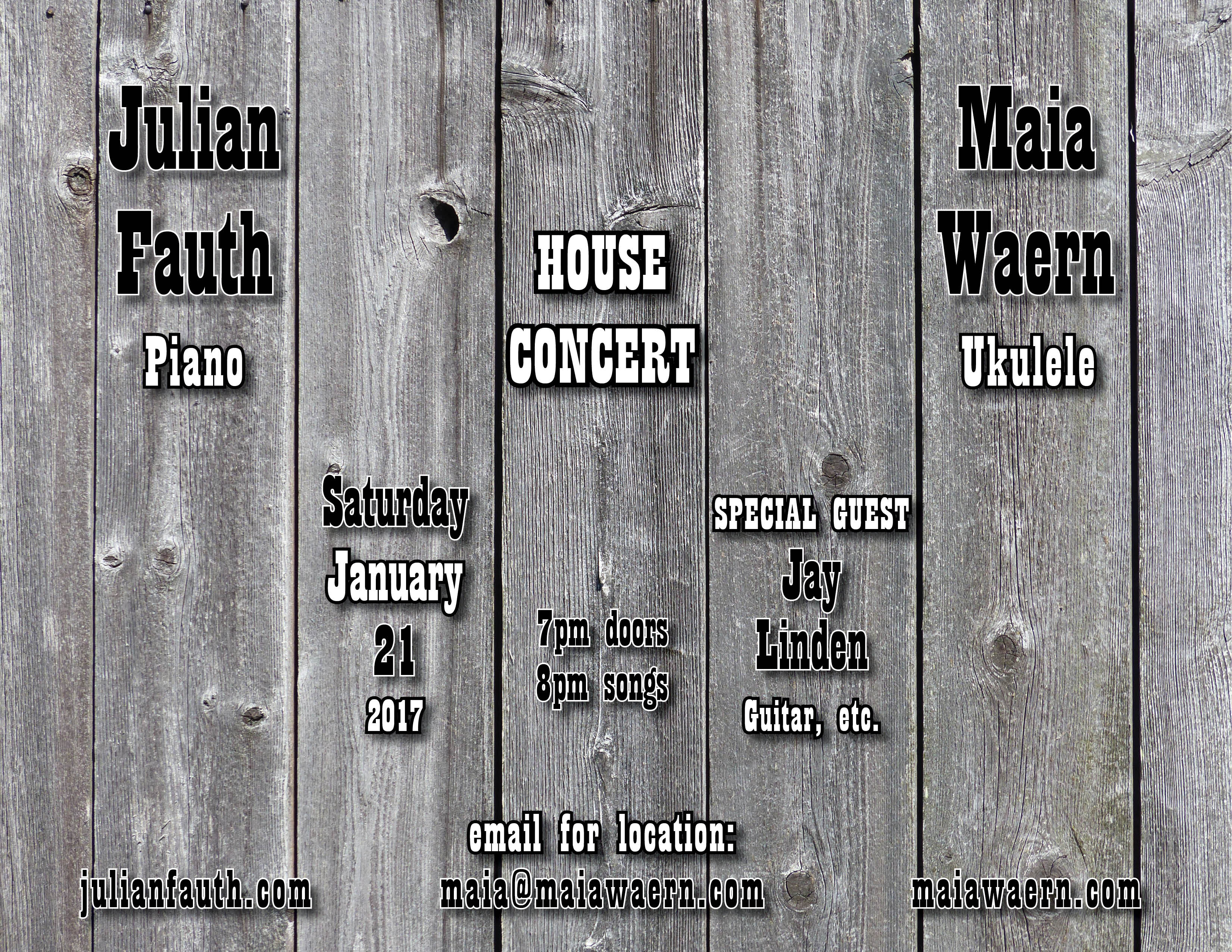 I’m looking forward to enjoying a night swapping songs with my good friends, Julian Fauth and Jay Linden!