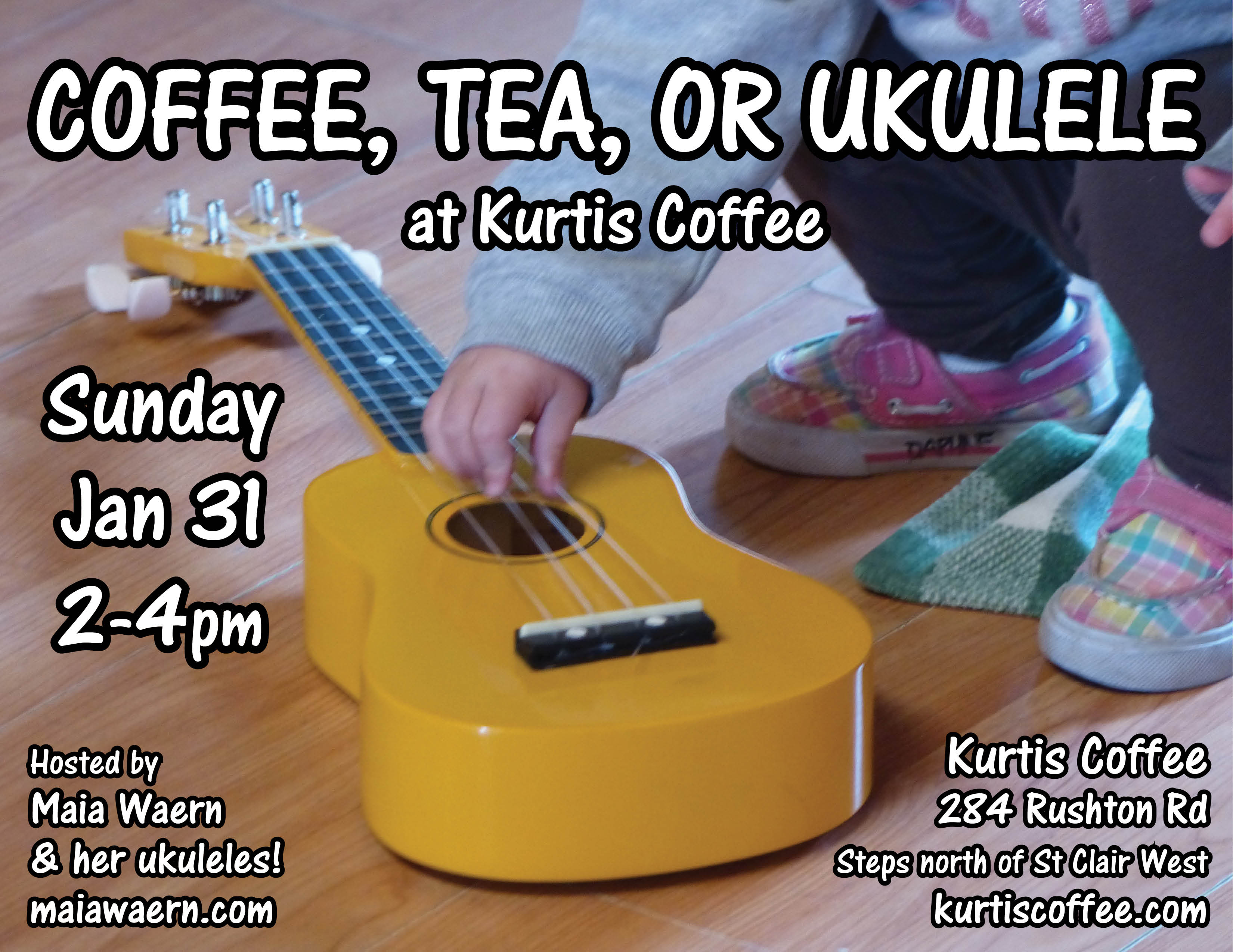 Come strum at Kurtis Coffee with Maia and her many ukuleles!