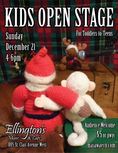 The next Kids Open Stage at Ellington's Music & Café is on SUNDAY, December 21, 2014