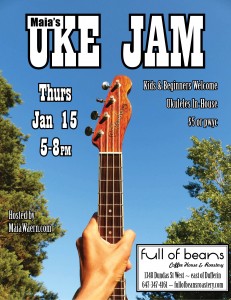 Third Thursday in 2015! During Dundas West BIA's #3TDundasWest "Third Thursdays on Dundas West" Kid-friendly Uke Jam Beginners welcome Ukuleles in-house Acoustic Uke Open Stage at 7:30pm! ~ Strum as you are ~ $5 or pay what you can