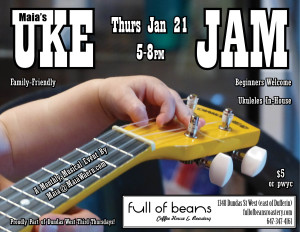 Come strum at Kurtis Coffee with Maia and her many ukuleles! Maia's ukuleles are for everyone to try -- all ages welcome -- from babies to grannies Kid-friendly ukuleles will be on a blanket on the floor There will be beginner's lessons, jamming and sing-a-longs Get a tune up -- Maia invites you to bring your out-of-tune ukuleles to be tuned It's hands-on, off-line family time -- and a great way to meet your neighbours! See uke on the 31st!…